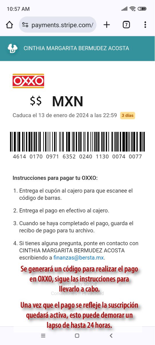 2. Por medio de pago en OXXO, tendrás que generar un código